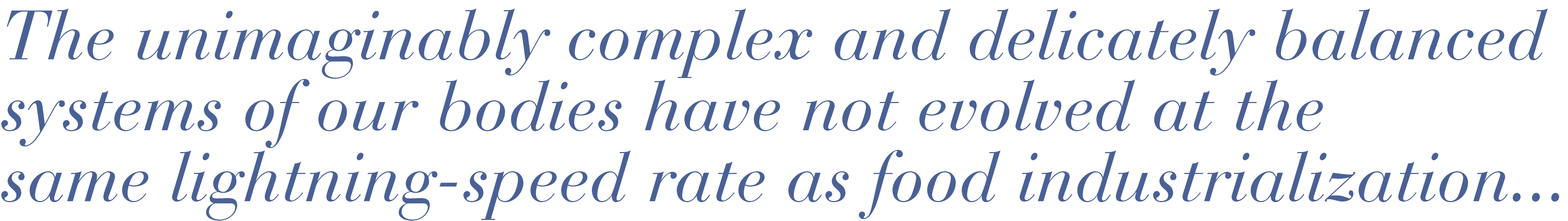 Do I think we should all be eating raw food? Heavens no, that hotly debated subject doesn’t square for me. However, there is a common thread I’ve discovered running through numerous books and discussions that Pottenger’s cats tied up in a bow: evolution. Our bodies have taken literally thousands of years to evolve. Yet within the last 100 years, we have abruptly introduced hundreds—if not thousands—of unnatural and man-made food products into our diets that our bodies are downright confused by and simply not equipped to process. The unimaginably complex and delicately balanced systems of our bodies have not evolved at the same lightning-speed rate as food industrialization, which has led to a myriad of systematic problems. Just like Pottenger’s cats.