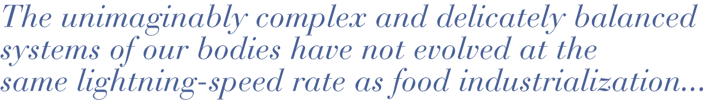 This was a fascinating read, packed with good advice. I've never thought of "food industrialization" as such, but it does urge me to start re-evaluating my notions of what actually constitutes "healthy eating." Radical changes ahead? Looking forward to the next installment!
