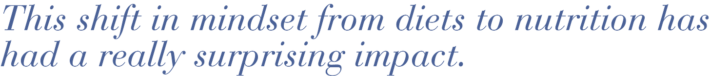 I started to evaluate what I ate based on what it did for my health. Not for my weight. Not for how utterly delicious it was. But what it was going to do to my health and body. This shift in mindset from diets to nutrition has had a really surprising impact. I have found my cravings for the occasional splurges such as potato chips, fries, and onion rings have all but disappeared.
