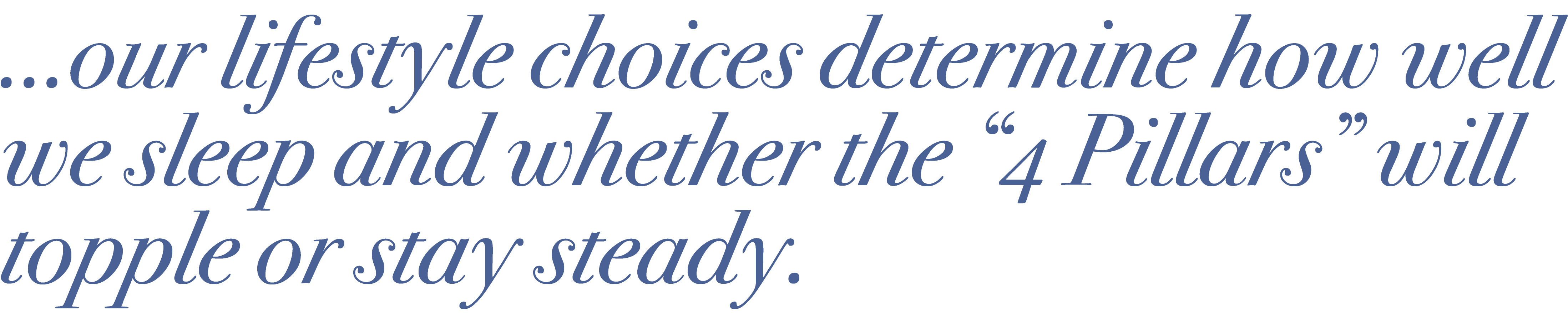 My overarching takeaway from the nearly two-and-a-half-hour discussion is that, more than any pill or supplement we can take, our lifestyle choices determine how well we sleep and whether the “4 Pillars” will topple or stay steady. In fact, when explicitly asked about what supplements he recommends, Dr. Walker said it’s a bit like stepping over dollars to pick up pennies; first, focus on the foundation of good sleep.