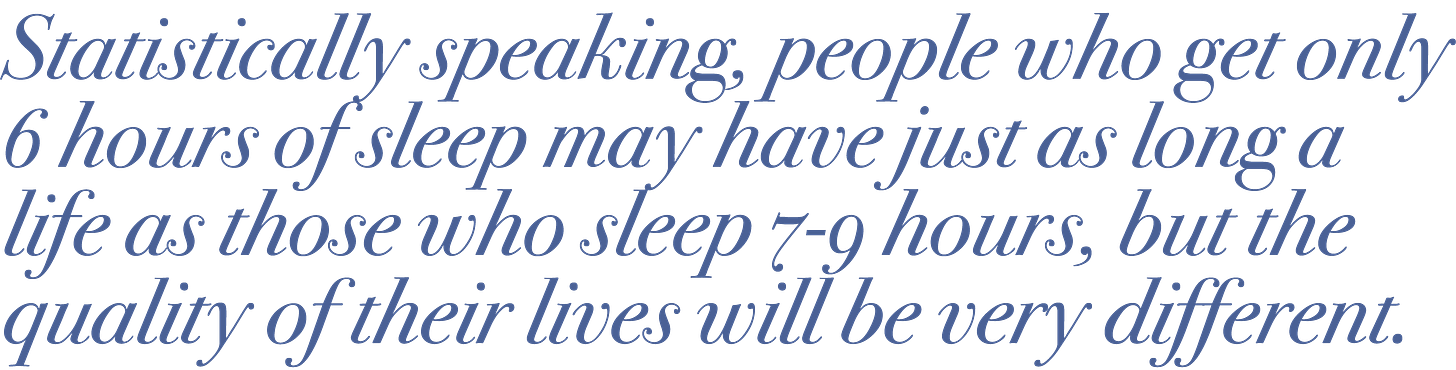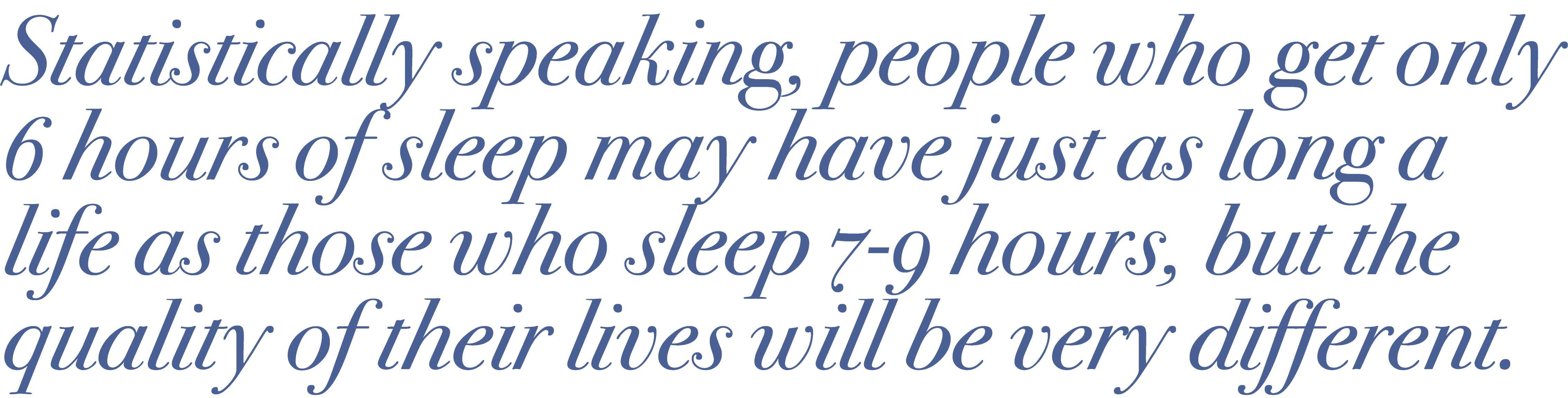 Statistically speaking, people who get only 6 hours of sleep may have just as long a life as those who sleep 7-9 hours, but the quality of their lives will be very different.
