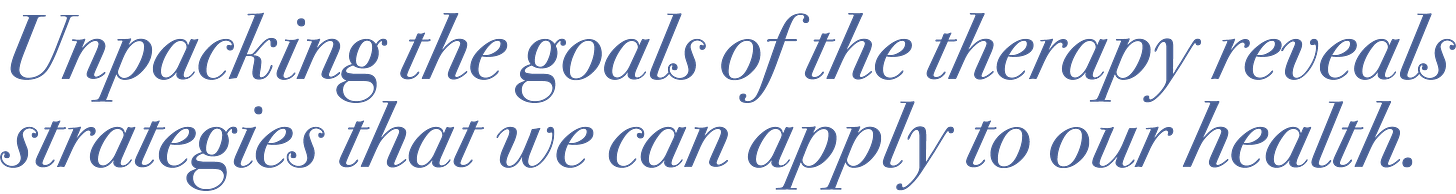 Unpacking the goals of the therapy reveals strategies that we can apply to our health. First up, eliminate inflammation. Chronic, low-grade inflammation known as inflammaging is believed to contribute to the development of many age-related diseases and accelerate aging. Inflammaging is nearly totally within our control, and there are many ways we can at least mitigate, if not eliminate, it through diet, exercise, and lifestyle choices as I outlined in “Inflammaging, Yes it’s a Real Word,” from two years ago.