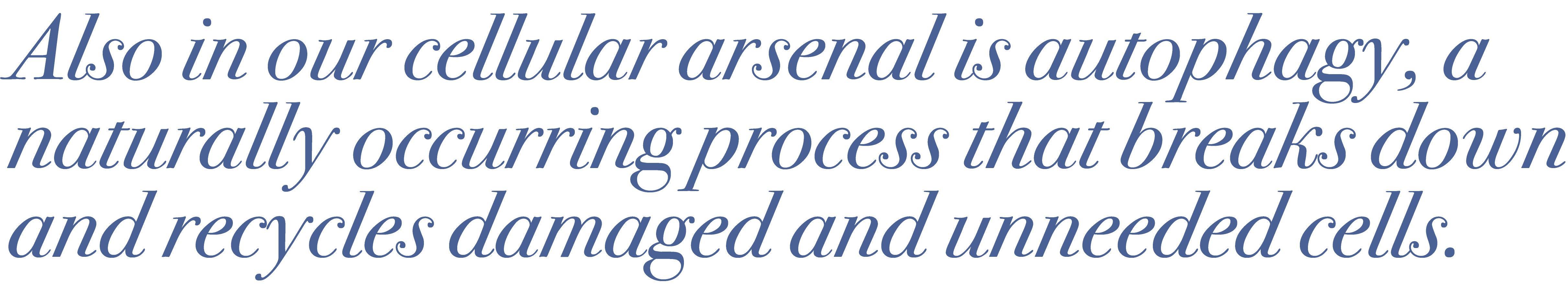 Also in our cellular arsenal is autophagy, a naturally occurring process that breaks down and recycles damaged and unneeded cells. Autophagy is increased with modalities such as fasting, high-intensity exercise, and a ketogenic diet. And let’s not forget our bodies’ lymphatic system, the built-in waste clearance apparatus that clears cellular debris and toxins that I wrote about in “The Labyrinthine Lymph,” and the glymphatic system, which similarly cleanses the brain. We can safeguard and increase the function of both these miraculous systems with movement, hydration, brushing, and sleep.