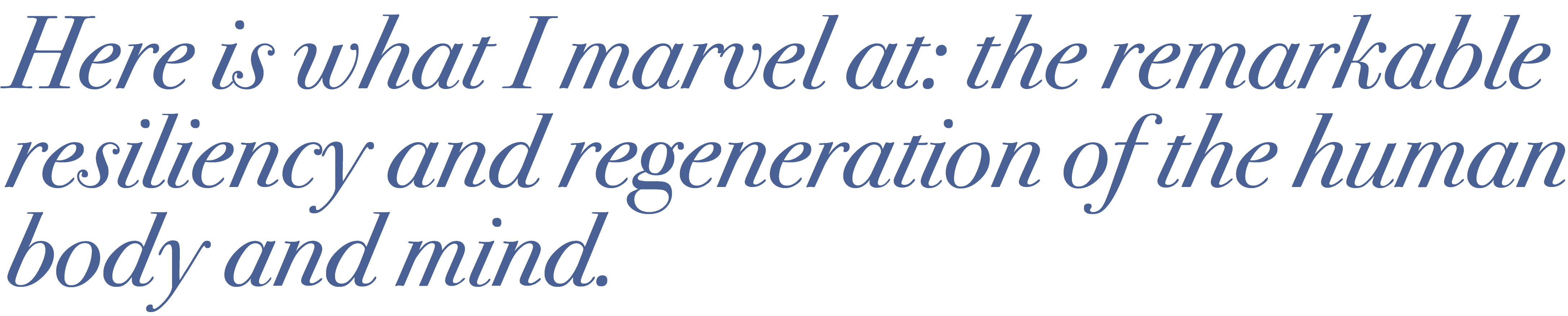But bounce back, they did. Of the 16 original survivors, 14 are still alive. Many went on to have very successful careers, and most had families and children. Here is what I marvel at: the remarkable resiliency and regeneration of the human body and mind. Aside from the miracle of surviving those 72 days, the fact that these men continued to thrive in the following decades is what I find most fascinating.